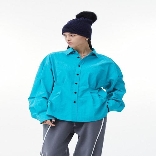 [테이즈]Oversized PinPin Shirt_Turquoise Blue