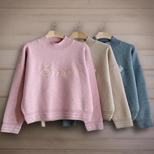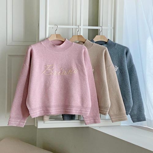 [신상오픈런]여성 블링 레터링 긴팔 니트 반목 루즈핏 비즈