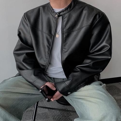 바쏘옴므 25년 그레이 헨리넥 비건레더 자켓 520947