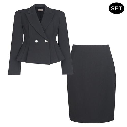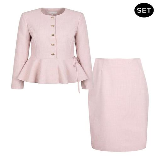 [비비드시크릿가너]SET 여성 페플럼 봄여름 정장 자켓+미디스커트 세트
