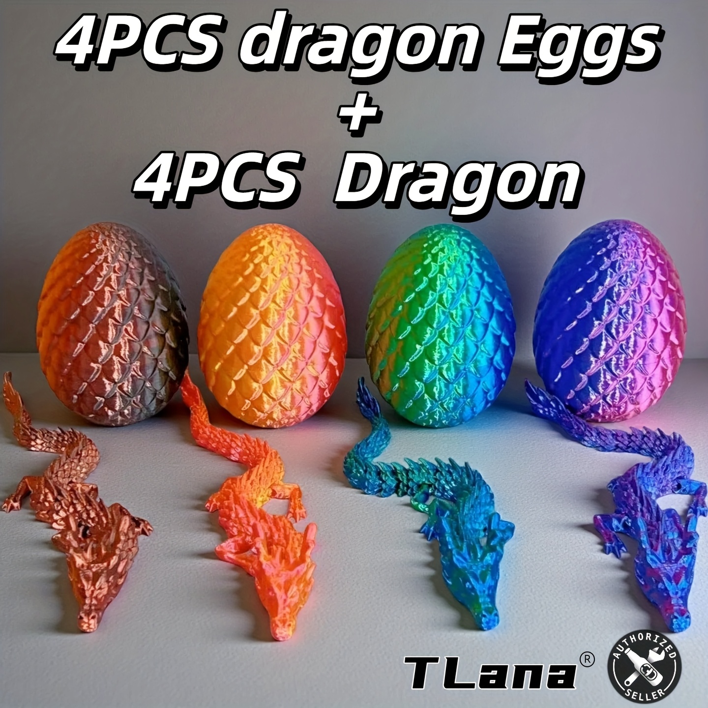 TEMU 움직이는 피규어가 있는 생동감 넘치는 3D 프린팅 이스터 드래곤 에그 - 컬러풀한 무지개빛 비늘, 유연한 목과 꼬리, 홈 또는 오피스 장식용 미스터리 박스 선물, 랜덤 색상, 놀라운 판타지 디자인, 드래곤 데코