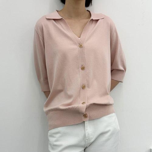 [옷자락]여자 여름가디건 카라 브이넥 비스코스 무지 가디건_4