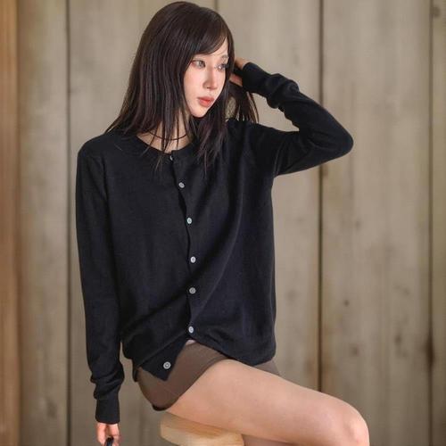 [신상오픈런]여자 심플 무지컬러 비스코스 단추 긴팔 니트 가디건