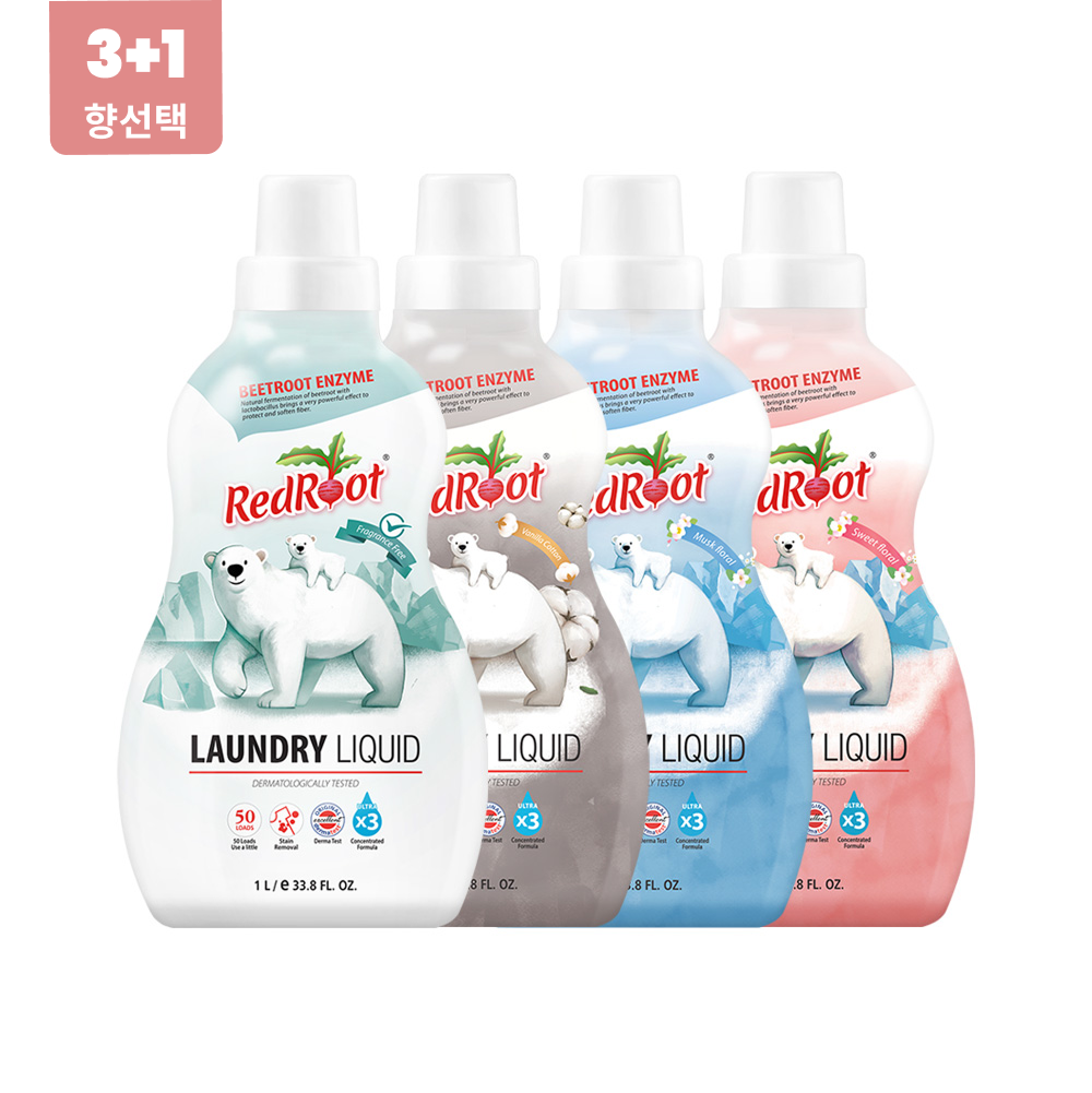 3+1 우리아이 유기농 약산성 안심세제 고농축 세탁세제 1L (4가지향)
