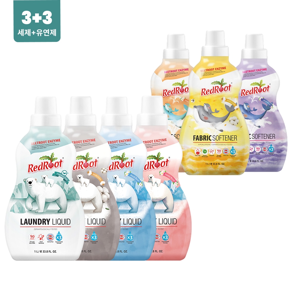 3+3 우리아이 유기농 약산성 고농축 세탁세제 3개+유연제 3개