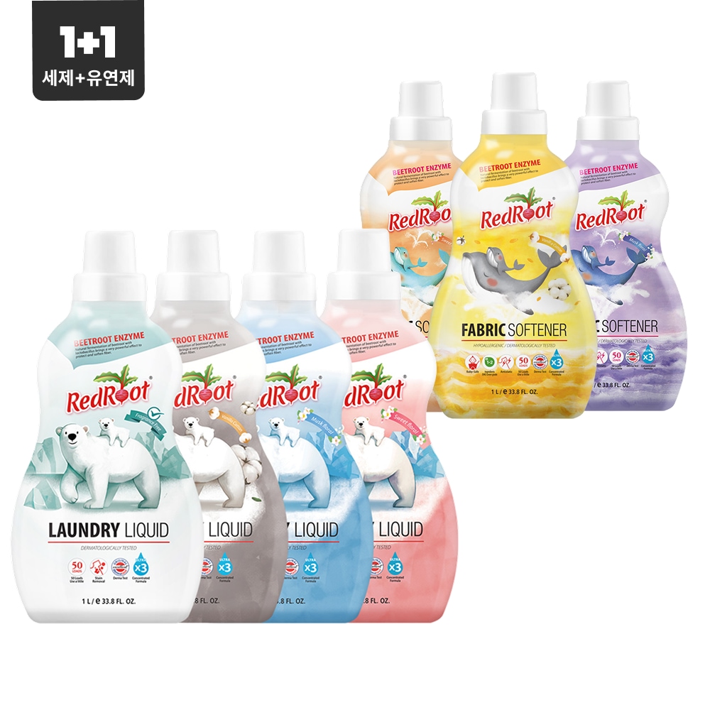 1+1 우리아이 유기농 약산성 고농축 세탁세제 1개+유연제 1개