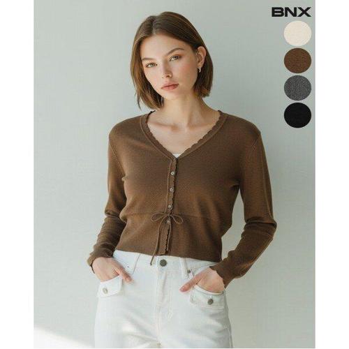 [비엔엑스]여성 물결 스트링 브이넥 가디건
