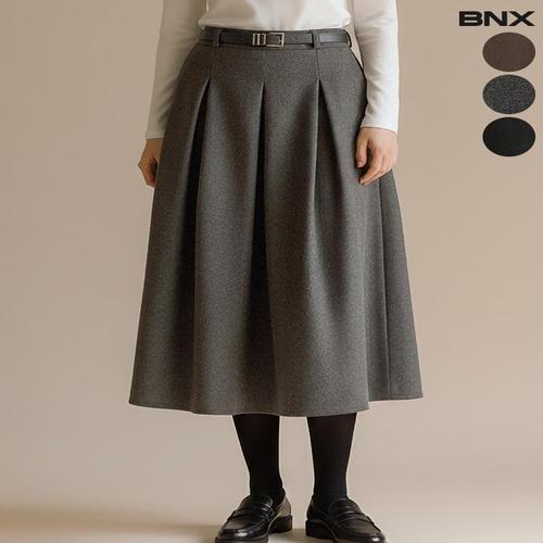 [BNX] 여성 벨트 세트 미디 플리츠 스커트