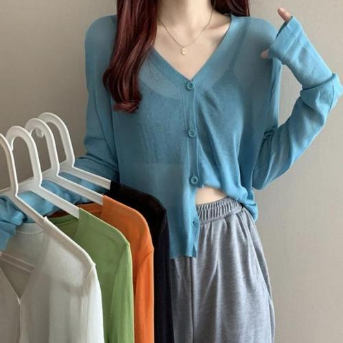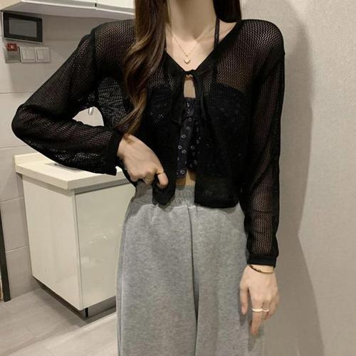 봄 여름 여성 시스루 가디건 휴양지 비치 크롭가디건
