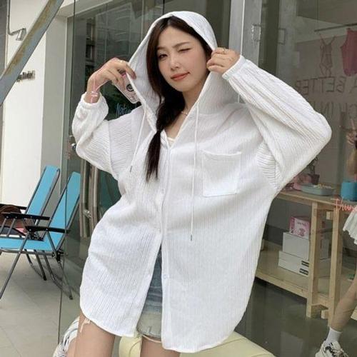 [에이치플러스몰]여름 오버핏 추천 비치는 얇은 꾸안꾸 후드 집업 바람