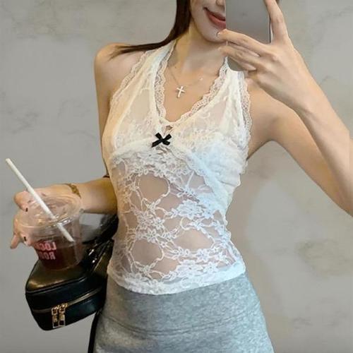 [다잇템][다잇템] 여자 매쉬 비침 레이스 홀터네크 나시티_21187370_588872