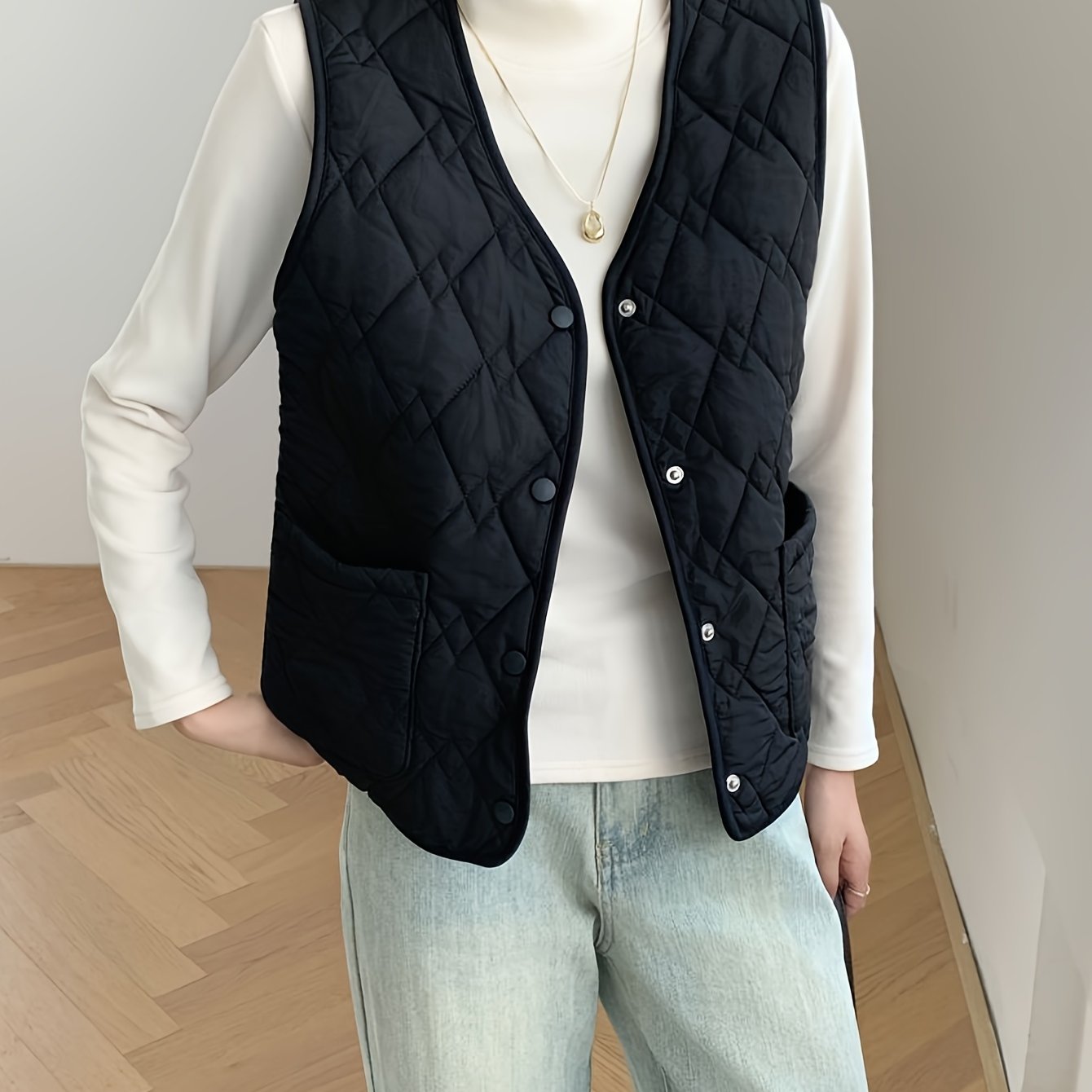 TEMU 솔리드 컬러 간편 데일리 여성용 패딩 조끼
