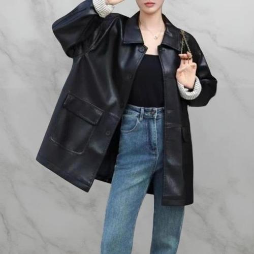[다잇템][다잇템] 여성 단가라 반소매 힙무드 빅사이즈 라이닝 레더 자켓_23740600_588872
