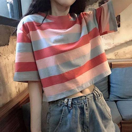 [엄지척]빅 스트라이프 크롭 반팔 티셔츠 BI-A200210_19626426_667501