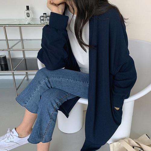 Kemei 여성 롱 니트가디건 루즈핏 단색 스웨터 코트 가을겨울 빅사이즈 데일리룩