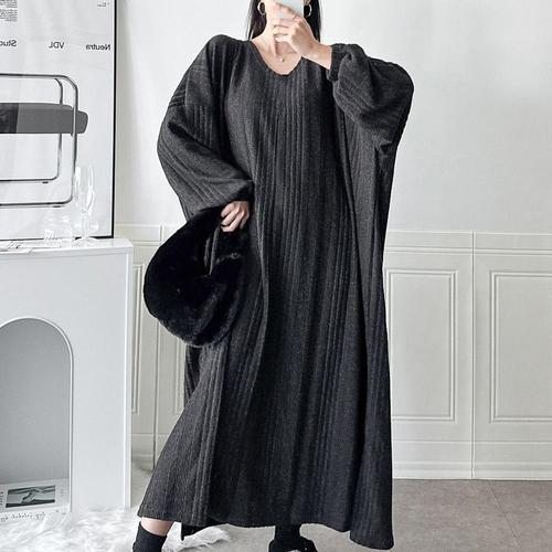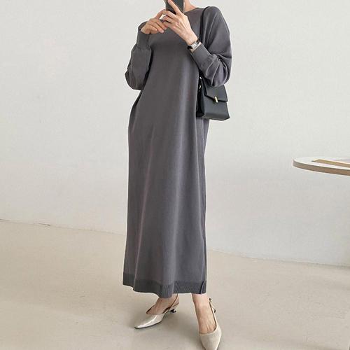 [문에이블]문에이블 여성 가을 겨울 루즈핏 라운드넥 베이직 편한 빅사이즈 니트 롱 원피스
