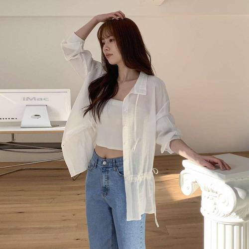 [다잇템]여자 빅사이즈 드로우코드 롱슬리브 블라우스