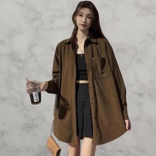 [다잇템][다잇템] 여성 롱 힙무드 남방 골지 빅사이즈 골덴 블라우스_23359062_588872