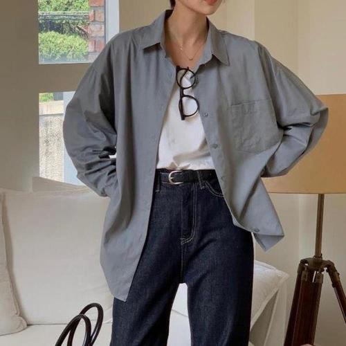 씨유제이 여성 롱 긴팔 블라우스 남친셔츠 오버핏 카라 베이직 셔츠