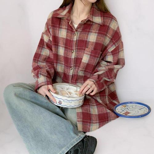 [다잇템]여성 베이직 두툼한 롱 격자 빅사이즈 셔츠
