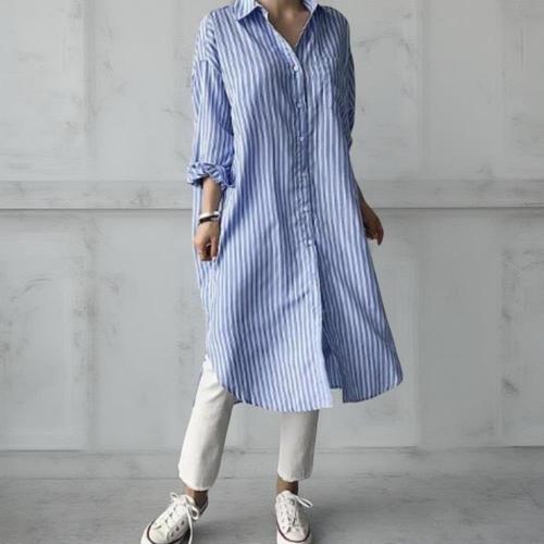 빅사이즈 오버핏 셔츠 여성 롱 블라우스 봄 가을 스트라이프 화이트남방