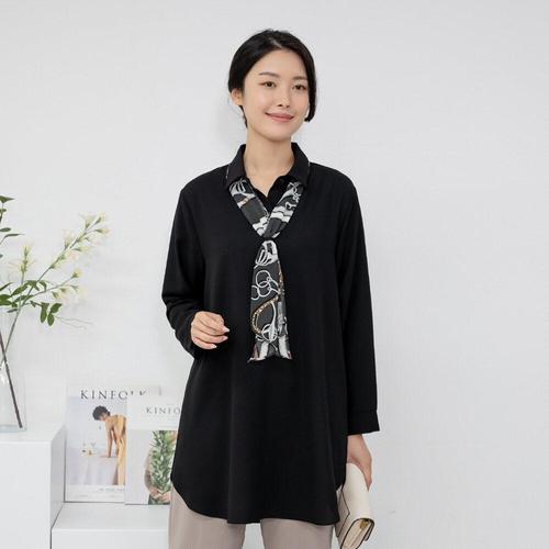 [까르죠아]스카프 폴라 롱 블라우스 빅사이즈 티셔츠 미시 여성 중년 마담 엄마옷 50대 60대 겨울 가을