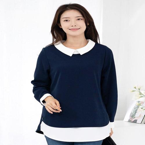 [모슬린]엄마옷 배색 스티치 롱 블라우스 515FGH354 마담/중년여성/빅사이즈/50대/60대