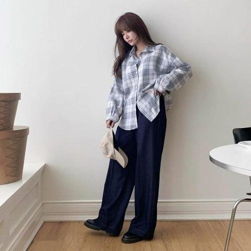 [다잇템][다잇템] 여자 면원단 빅사이즈 남방 캐쥬얼 콘트라스트 격자 롱슬리브 남방_22842698_588872