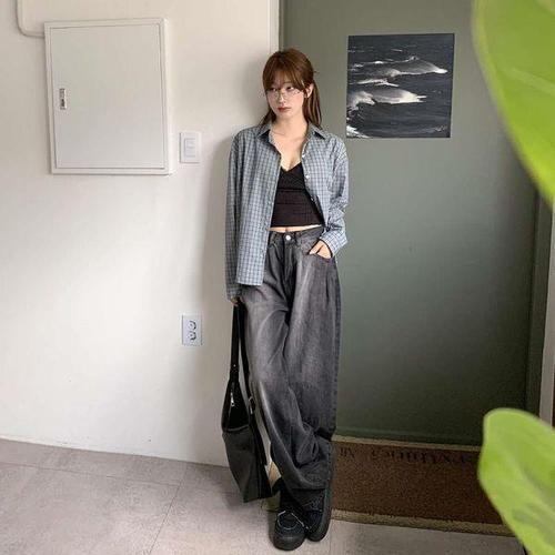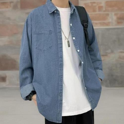 [다잇템] 남녀공용 빅사이즈 그런지 진셔츠 진 롱슬리브 셔츠