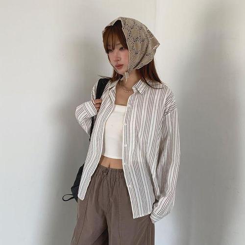 [다잇템]여성 롱슬리브 세로줄지 남방 빅사이즈 남방