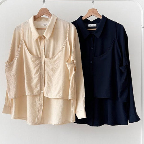 |KSH412E|여성 빅사이즈 루즈핏 레이어드 뷔스티에 셔츠 가을용