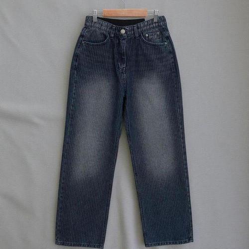 [신상오픈런]여성용 통일자 워싱 청바지 빅사이즈 스트라이프 속밴딩