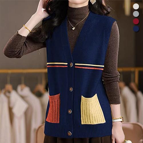 [유니제이] 낼라 배색 포켓 브이넥 조끼