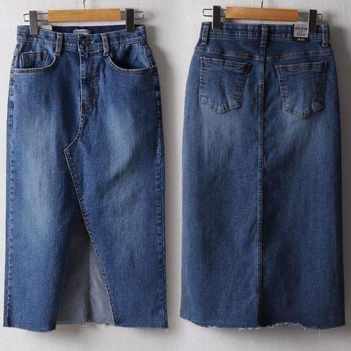 [셀러허브_여성트랜드패션]빅사이즈 504 컷팅스판밴딩데님스커트 DLOP416