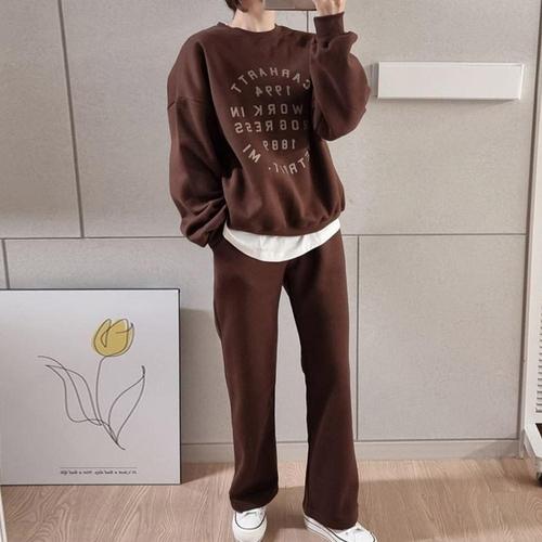 [남녀공용] 마린 기모 트레이닝 세트 3color / 기모 조거 바지 + 맨투맨 / 빅사이즈 F, L