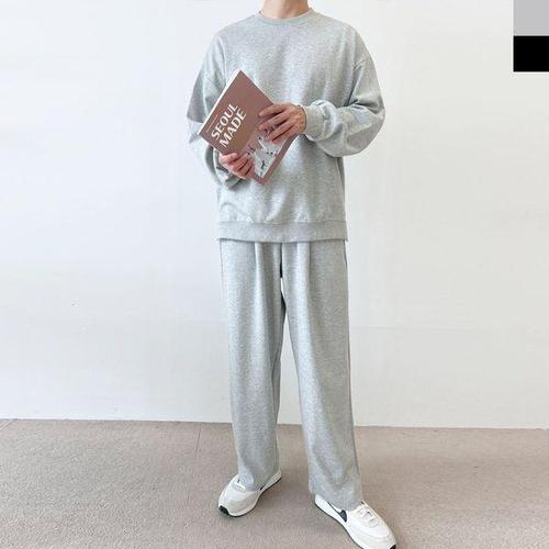 [에이치플러스몰]남성의류 남자빅사이즈무지맨투맨와이드바지세트