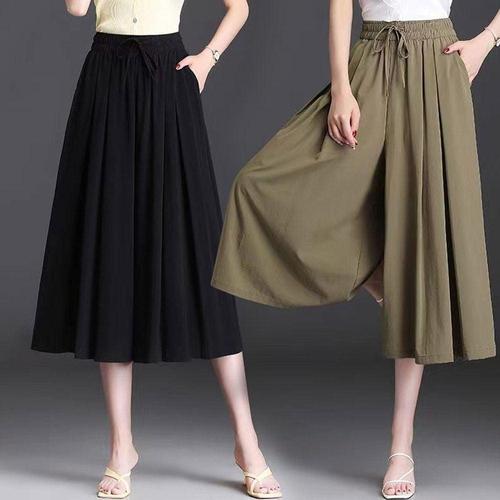 하이웨스트 빅사이즈 통바지 밴딩 치마바지 와이드핏 여자 2색 WFKBX6V