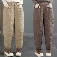 ROYALBELLE 여성 하이웨스트 허리밴딩 패딩 긴바지 루즈핏 빅사이즈 캐주얼 데일리 보온 배기팬츠 D00111212