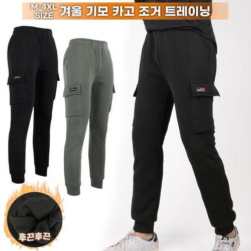 [남녀공용] 로우 카고 기모 조거 팬츠 4color 빅사이즈 FREE-2XL 겨울 트레이닝 팬츠