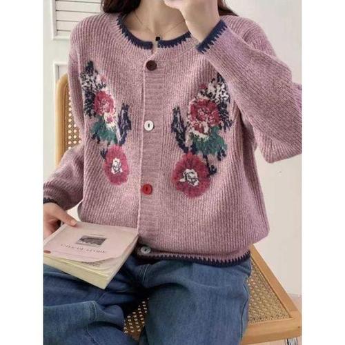 [디얼마미]더블꽃 니트 울 가디건 /마담 미시 중년 여성 빅사이즈 40대 50대