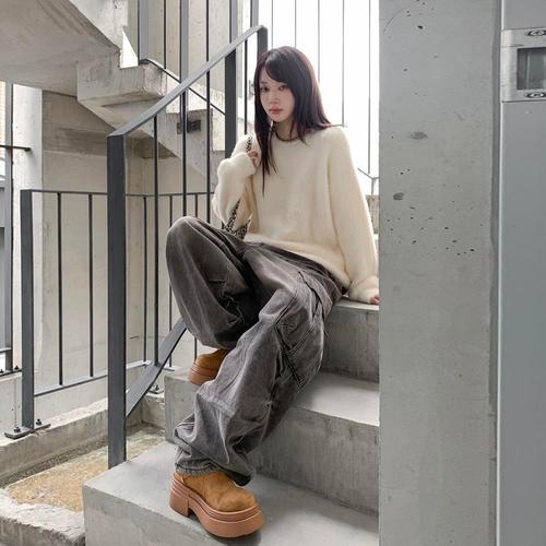 [다잇템]여성 민무늬 넓은 빅사이즈 스웨터 세트