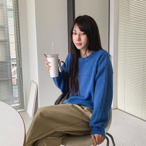 [다잇템]여성 U넥 부드러운 빅사이즈 롱슬리브 니트