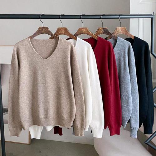 [다잇템]여자 빅사이즈 V넥 미니멀리즘 롱슬리브 니트