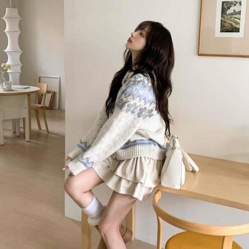 [다잇템][다잇템] 여자 스웨터 스노우패턴 울 빅사이즈 오트밀 노르딕 가디건_23997305_588872
