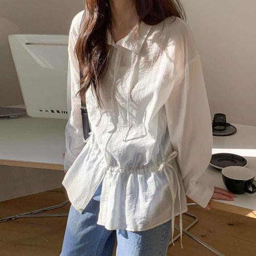 [다잇템]여성 롱슬리브 드로우코드 코디 빅사이즈 셔츠
