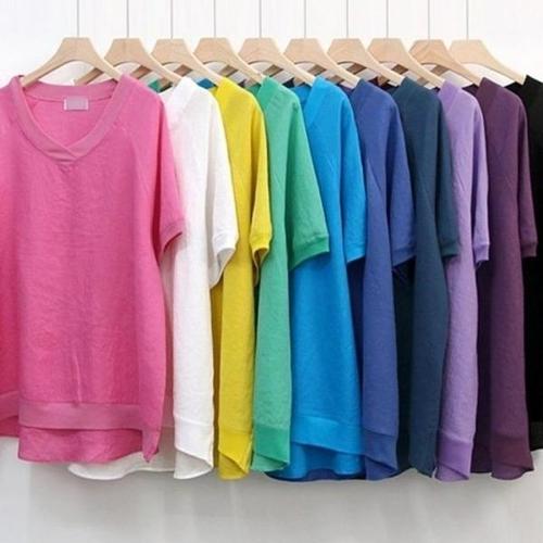 [엄지척]306K153S 반팔티 빅사이즈 브이 컬러 린넨_19593819_667501