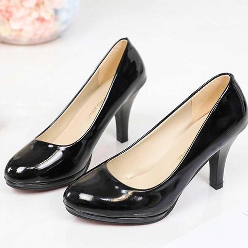 TEMU 여성용 블랙 하이힐 pumps - 두꺼운 두꺼운 발가락, 날카로운 발가락, 고무 밑창이 있는 광택 있는 합성 커버, 모든 계절을 위한 우아한 드레스 신발