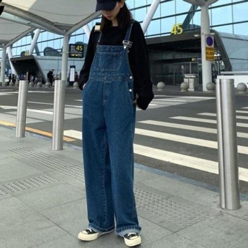 HAMMER 상표등록 여성 데님 멜빵바지 헐렁한 청바지 점프수트 긴바지 통바지