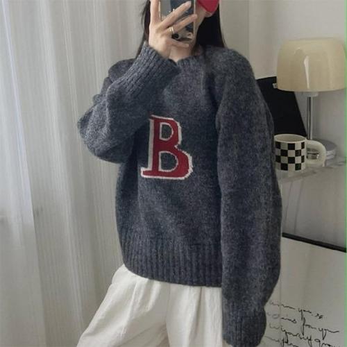 [다잇템][다잇템] 여성 콘트라스트 알파벳 라글란 울 빅사이즈 니트_23287594_588872