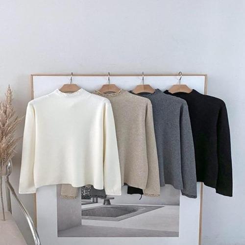 [옷자락][다잇템] 여자 레이스 롱슬리브 빅사이즈 모크넥 민무늬 미니멀리즘 니트_23328614_588870